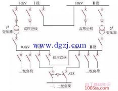 民用建筑分级负荷的供电方式 10 kV配变电所常见的主接线如图1所示。 图1 10 kV配变电所常见的主接线...